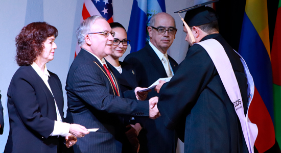 Uno a uno, los 29 Egresados recibieron de manos del Rector su constancia de finalización de estudios y de la mano de la Vicerrectora, la Insignia Institucional con la que nuestra Universidad reconoce a quienes han concluido estudios en esta Institución.