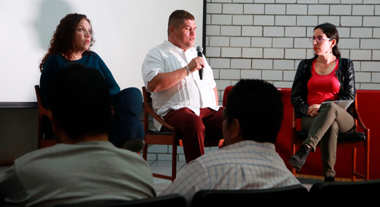 En un primer momento, los asistentes participaron de una charla a cargo de Efrén Hernández y Angélica Navarro en la que abordaron temas en torno a la discapacidad visual y becas que ofrece la Universidad.