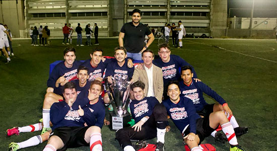 Un jugador del equipo Campeón CABO VERDE, CARLOS SAÚL JIMÉNEZ CANSECO alumno del 7mo. semestre de Actuaría, obtuvo el liderato de Goleo en este semestre, alcanzó este reconocimiento con un total de 16 goles anotados durante la temporada regular.