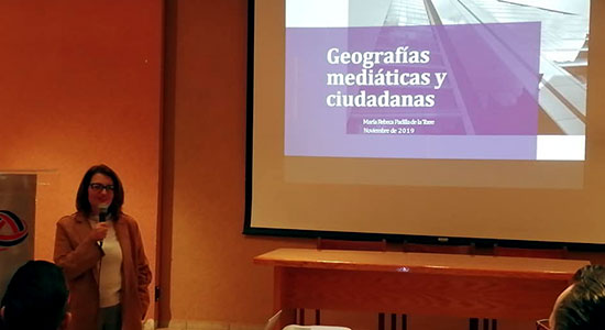 El pasado jueves 14 de noviembre de 2019, en el auditorio Cosme Vera de nuestra Universidad, la doctora Rebeca Padilla de la Torre impartió la conferencia “Geografías mediáticas y ciudadanas”. A ella asistieron profesores y estudiantes de las Facultades de Arquitectura, Comunicación y Mercadotecnia, entre otras unidades académicas.
