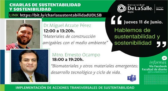 Para este mes de septiembre y lo que resta del semestre los webinars de Sustentabilidad y Sostenibilidad continuarán presentándose por las Plataformas de Microsoft Teams y Zoom, si estás interesado en participar y necesitas conocer mayor información visita la página oficial de la Facultad de Diseño en Facebook.