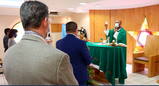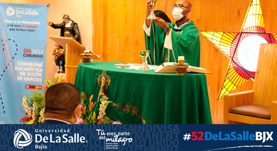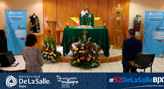 Para enmarcar el inicio de esta celebración, el día domingo por la mañana se realizó en la capilla de la Facultad de Negocios del Campus Campestre, una Celebración Eucarística en la que participaron el Hno. Marco Aurelio González Cervantes, Rector de nuestra Casa de Estudios; la Mtra. Socorro Durán, Vicerrectora Académica y representantes de Directores y Académicos, la ceremonia fue compartida a toda la Comunidad Universitaria a través de un Facebook Live.