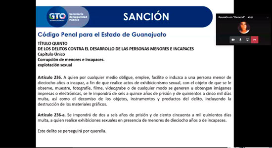 Además, se mencionó la Ley Olimpia y el Código Penal para el estado de Guanajuato, misma que refiere a un conjunto de reformas legislativas encaminadas a reconocer la violencia digital y sancionar los delitos que violen la intimidad sexual de las personas, a través de medios digitales, también conocida como ciberviolencia.