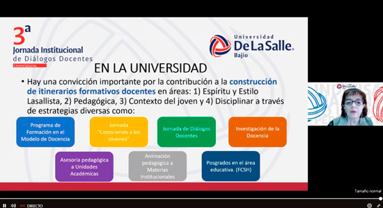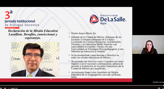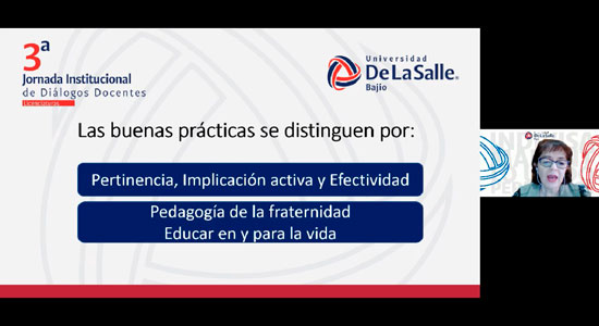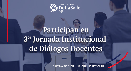 En la Universidad De La Salle Bajío estamos comprometidos con la educación integral de nuestra Comunidad Lasallista, en la que proporcionamos herramientas, para generar un impacto en el entorno social y brindar oportunidades, no solo académicas, sino de vida, por lo que nuestros docentes participan de manera activa, en eventos que favorezcan las estrategias de educación óptima, como en esta ocasión, en la 3ª Jornada Institucional de Diálogos Docentes.