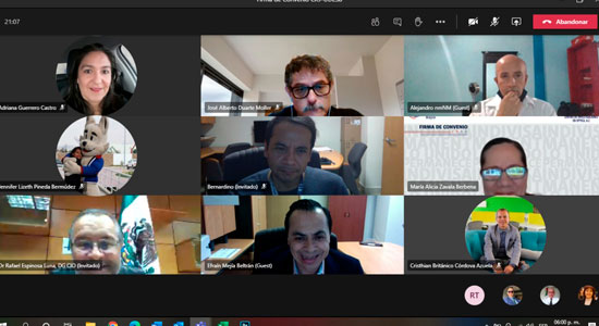A través de un encuentro virtual, se realizó de manera oficial, la firma de convenio a cargo de las autoridades por ambas Instituciones. Por parte de nuestra Universidad estuvieron presentes: el Hno. Marco Aurelio González Cervantes, Rector de nuestra Casa de Estudios; Ma. Socorro Durán González, Vicerrectora Académica; María Alicia Zavala Berbena, Directora de Investigación y José Alberto Duarte Moller, profesor Investigador de tiempo completo.