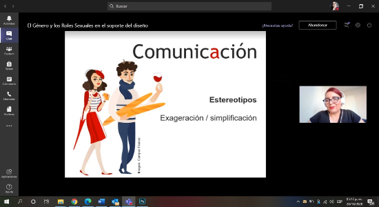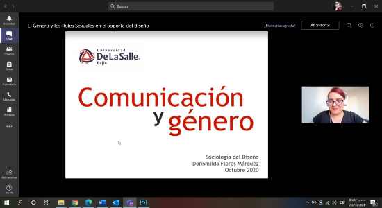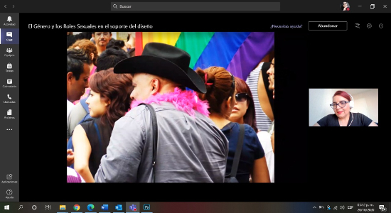 Alrededor de 30 alumnos, se reunieron a través de Teams, para escuchar la primera charla en la que la Dra. Dorismilda, compartió una imagen que ella tomó durante una marcha del orgullo gay, donde se muestra a un hombre de espaldas vestido con sombrero vaquero, una boa de plumas color rosa y sobre su hombro, llevaba una bolsa de correa negra. Se dirigió a los estudiantes diciendo: “Quiero que hagan un ejercicio, ¿Qué les representa esta imagen?, porque hay una serie de elementos que podemos relacionar con determinadas identidades y no necesariamente se trata de identidades conectadas”.