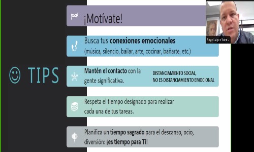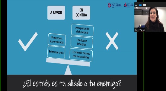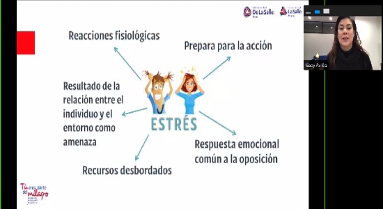 Este encuentro a través de la plataforma Zoom, fue impartido por el Departamento de Pastoral de La Salle México, en el cual, se revisaron los componentes del estrés, así como, preparación para la acción, respuesta emocional, recursos desbordados y reacción fisiológica.