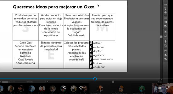 Los alumnos de primer semestre participaron en una competencia lúdica acerca de los conceptos vistos en la presentación, mientras que los de tercero aplicaron herramientas creativas para generar ideas sobre temas específicos.