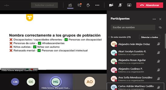Durante las conferencias, Hilda Ivonne Márquez, perteneciente al CRIT, explicó el término correcto para referirse a diferentes grupos de población, como, por ejemplo: Capacidades diferentes, se dice, “Personas con discapacidad”; Personas de color, es apropiado decir, “Afrodescendientes”; Niños autistas, es correcto decir, “Niñez con autismo”; Retrasado mental, se dice, “Persona con discapacidad intelectual”, por mencionar algunos.