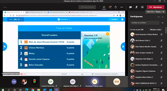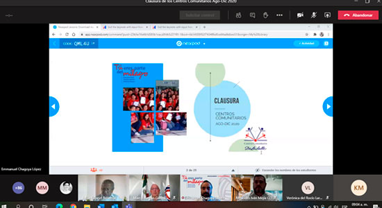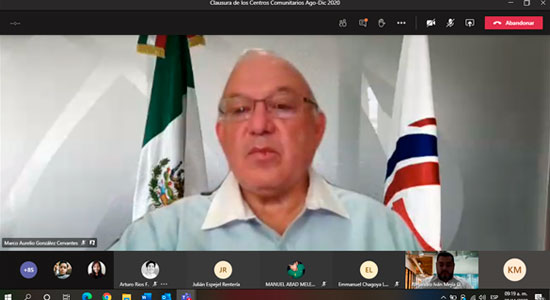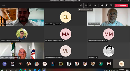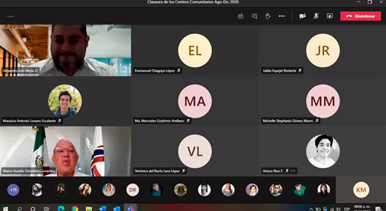 A través de una ceremonia en la plataforma Teams, Autoridades Académicas de la Universidad De La Salle Bajío, se reunieron para realizar oficialmente la Clausura de las actividades en los Centros Comunitarios del ciclo agosto-diciembre 2020, en los que participaron 120 estudiantes del Campus Campestre, brindando diferentes asesorías en cursos y talleres, a poco más de 2 mil beneficiarios.