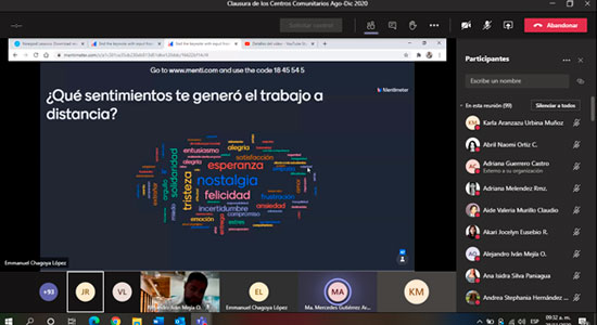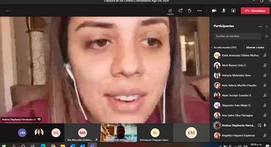 Por su parte, la Lic. Verónica, expresó el siguiente mensaje: “Sabemos que, durante la mayor parte de este año, hemos vivido circunstancias muy particulares de forma personal, familiar, en el ámbito académico y en la interacción con los diferentes Centros Comunitarios, todas ellas derivadas por el COVID- 19, pero más que un obstáculo, se convirtió en un detonante para adaptar nuestros procesos, metodologías y prácticas”.