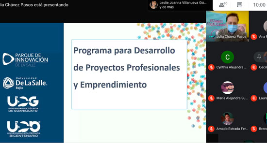 Con el fin de fortalecer habilidades, conocer herramientas y metodologías actuales, para desarrollar una propuesta de proyecto profesional y/o de emprendimiento, se llevó a cabo el primer “Programa para el Desarrollo de Proyectos Profesionales y Emprendimiento“, organizado por el Parque de Innovación De La Salle Bajío, para estudiantes de la Universidad Politécnica de Guanajuato y la Universidad Politécnica del Bicentenario.