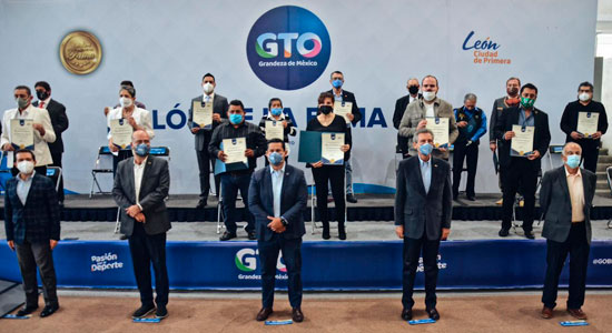 Dicha ceremonia, en la que estuvo presente el gobernador Diego Sinhué y el titular de la Comisión del Deporte del Estado de Guanajuato, se realizó en las instalaciones del Módulo Multidisciplinario del Centro Deportivo CODE León1, en donde el mandatario entregó el Premio Estatal del Deporte y encabezó la ceremonia de Ingreso al Salón de la Fama 2020.