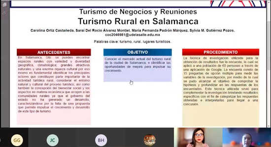 - Nínive Itzamara Cantero Palma, Lourdes Berenice Galaviz Silva, Paulina Denisse García Escobedo, María Fernanda Rodríguez Luna, Alicia Itzel Romero González, Paulina Salum Jiménez, de la Licenciatura en Desarrollo del Capital Humano, con su cartel: “Resistencia de la población al uso del cubrebocas: un análisis cualitativo”.