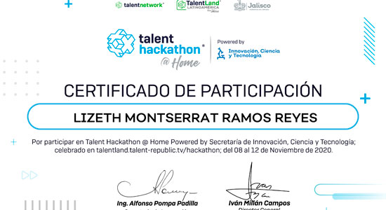 Llevando a la par sus clases en línea, nuestra estudiante, junto con su compañera de equipo Cynthia Plancarte, a quien conoció en Ottawa, Canadá, al ser roomies mientras estudiaban en Algonquin College, gracias a la beca “Líderes en Canadá” de Educafin en 2018, participó en Talent Hackathon @Home, el cual reúne a personas de toda América Latina, quienes contaban con perfiles diferentes, desde estudiantes de universidad hasta profesionistas con doctorado. De los registros totales, hubo 821 inscritos.