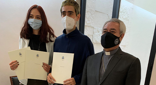 Durante este encuentro estuvieron presentes: el Hno. Marco Aurelio González Cervantes, Rector de nuestra Institución; los estudiantes, Luz Andrea Canchola Gómez y Diego Barradas Chacón, en representación de su compañera Camila Barreiro Téllez, quien no pudo estar presente; el Director de la Facultad de Diseño, José Ángel Chavarría Nieto; el Arzobispo de León, Alfonso Cortés Contreras y el Padre Antonio Borja Vargas, Rector de la Catedral; así como también, el maestro, Manuel Araiza Ramírez, quien en conjunto con la Coordinadora de la Carrera de Diseño Gráfico Estratégico, Marión Vallejo Hernández, han estado siempre atentos al proyecto.