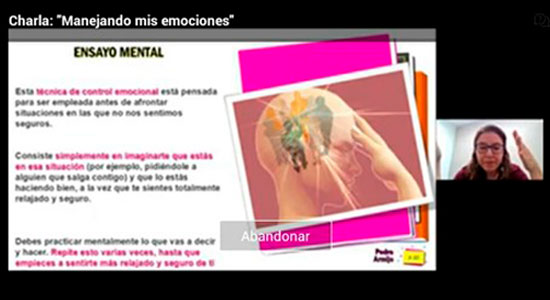 Esta ponencia, realizada a través de la plataforma Teams, fue dirigida por la Mtra. Monserrat Flores Rentería, licenciada en Psicología, con maestría en Programación Neurolingüística e Inteligencia Emocional, quien invitó a los alumnos a plantearse las siguientes preguntas: ¿Qué son las emociones?; ¿Para qué me sirven las emociones?; ¿Las emociones se controlan?; ¿Afectan a mi cuerpo? Y ¿Puedo controlar las emociones de los demás?