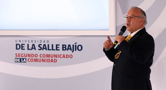 El Hno. Marco Aurelio, se pronunció ante la audiencia como el portavoz de las actividades realizadas por la Comunidad Lasallista, ya que los logros de nuestra Casa Universitaria son gracias al trabajo colaborativo y por asociación de cada uno de sus miembros. Sumando que: “Nuestra Universidad se fundó desde la convicción por ampliar la labor educativa de los Hermanos, para que respondiera a las necesidades de Educación Superior. Fiel a su vocación, ha sido capaz de transformar su entorno, pero también ha sido capaz de transformarse a sí misma para lograrlo”.