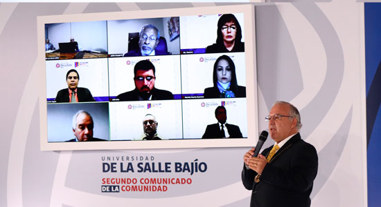 Adaptándonos a la nueva funcionalidad social y atendiendo las normas de sanidad propuestas por nuestras autoridades de salud, se llevó a cabo en sesión abierta de la H. Junta de Gobierno de la Universidad De La Salle Bajío, el 2do Comunicado de la Comunidad del Rector Marco Aurelio González Cervantes fsc. A través de un Facebook Live, se dieron a conocer los logros obtenidos como Institución Educativa a lo largo del 2020, año en el que se tuvo que dar respuesta inmediata al reto de la no presencialidad.