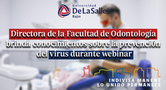 “SARS COV2 Estado actual de la pandemia y sus repercusiones en la Odontología”, fue la charla que impartió la Dra. Laura María Díaz Guzmán, Directora de la Facultad de Odontología de la Universidad De La Salle Bajío, Campus Campestre.
