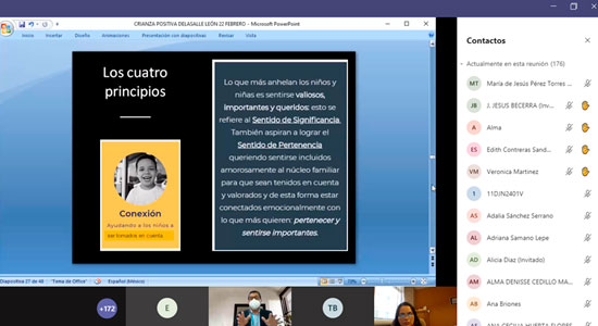 En esta ponencia, realizada a través de Microsoft Teams, los participantes se mostraron muy agradecidos con la Institución por brindar estos espacios de reflexión y acompañamiento en su rol parental.