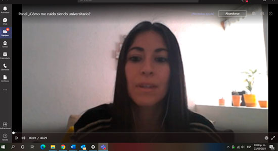 Otro de los temas abordados fue: “Cómo me cuido siendo universitario”, un panel realizado por Jesús Eduardo Calvillo García, estudiante de la licenciatura del Desarrollo del Capital Humano de 8vo semestre; Alondra Montserrat Infante Trujillo, 8vo semestre de Administración de Negocios; Lizeth Anaí Medrano Macías, 6to semestre de Ingeniería en Tecnologías y Soluciones de Negocios.