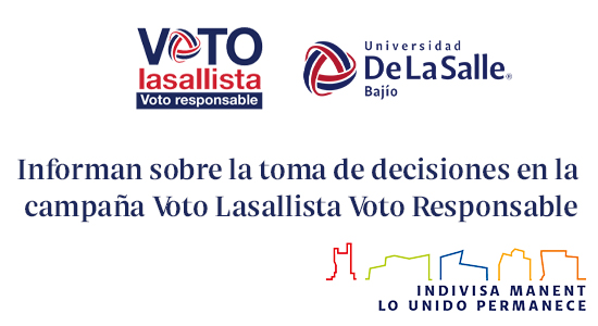 A fin de promover la participación ciudadana en las próximas elecciones del 6 de junio 2021, la Universidad De La Salle Bajío, a través de la Facultad de Derecho, organizó la campaña Voto Lasallista Voto Responsable, conformada por una serie de webinars que brindan información necesaria a la Comunidad Lasallista para la toma de decisiones.