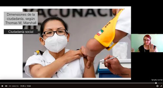 La ponente, también compartió los ejes de la ciudadanía según Juan Manuel Ramírez Sáiz, los cuales son: Reconocimiento y pertenencia a una comunidad política; Derechos y responsabilidades de la comunidad política; Instituciones políticas que protegen y regulan la participación.