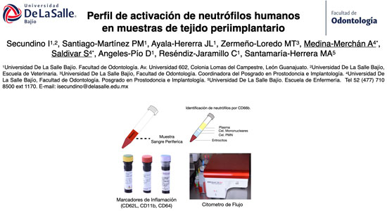 Samanta Saldívar y Alfredo Medina Merchán, son estudiantes de la Especialidad en Prostodoncia e Implantología, quienes, durante este congreso en la virtualidad, presentaron su trabajo de investigación titulado: “Perfil de activación de neutrófilos en muestras de tejido periimplantario”.