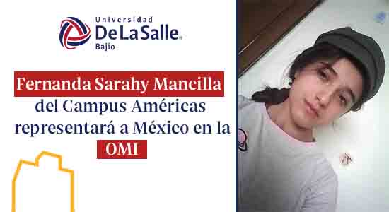 La alumna Fernanda Sarahy Mancilla Núñez, estudiante del cuarto semestre de preparatoria de la Universidad De La Salle Bajío, Campus Américas, ha sido seleccionada para representar a México en tres certámenes diferentes: Competencia Iberoamericana de Informática y Computación 2021; International Olympiad in Informatics (IOI) en Singapur, y en la primera Olimpiada Europea femenil de Informática en Suiza, estas dos últimas competencias serán de manera virtual.