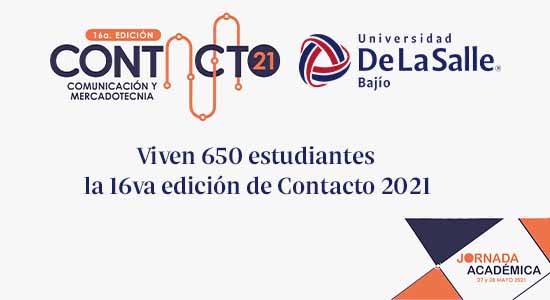 Alrededor de 650 estudiantes de Licenciatura y Posgrados de la Facultad de Comunicación y Mercadotecnia de la Universidad De La Salle Bajío, Campus Campestre participaron en la 16va. Jornada Académica “Contacto” 2021.