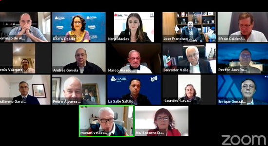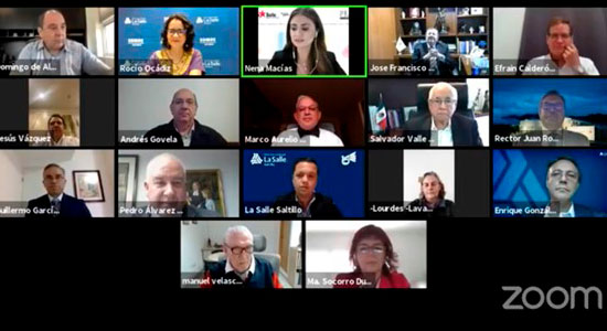 En este evento en la virtualidad también estuvieron presentes: el Mtro. Efraín Claderón Amaya, Rector de La Salle Cancún; el Hno. Guillermo García López, Rector de La Salle Chihuahua; Lic. Luis Arturo Dávila De León, Rector de La Salle Laguna; el Hno. Alejandro González Álvarez, Rector de La Salle México; Dr. Jesús Vázquez Estupiñán, Rector de La Salle Morelia; Hno. Andrés Govela Gutiérrez, Rector de La Salle Netzahualcoyotl; Hno. Salvador Valle Gámez, Rector de La Salle Noroeste; Dra. Lourdes Lavaniegos González, Rectora de La Salle Pachuca; Hno. José Manuel Velasco Y Arzac, Rector de La Salle Puebla; Hno. José Ramón Cubillas Romero, Rector de La Salle Saltillo; Hno. Juan Roberto López González, Rector de La Salle Victoria; Hno. Julián Espejel Rentería, Vicerrector de Formación y Bienestar Universitario y Mtra. Socorro Durán González, Vicerrectora Académica De La Salle Bajío.