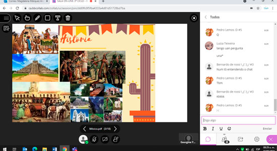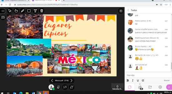 Por otra parte, un grupo de alumnas que hicieron una investigación, elaboraron una presentación del tema “México” para los estudiantes de Brasil; el equipo estuvo conformado por: Georgenian Yaretzi García Guzmán, Valentina Olivares Hernández, Selyna Porras Gasca, Fátima del Carmen Ríos Villalpando, Jéssica Mariana Sánchez Murillo, Aranza Serna Tamayo y María Fernanda Villarreal Parada.