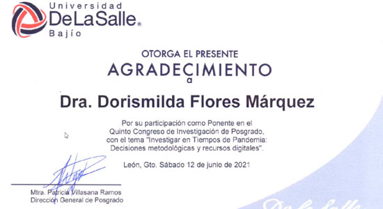 La Dirección de Posgrado de la Universidad De La Salle Bajío pone especial énfasis en la generación de la investigación para dar respuesta a los problemas de la sociedad actual, una sociedad basada en el conocimiento y caracterizada por su complejidad, por los cambios acelerados y permanentes en diversos campos del quehacer humano, científico, tecnológico, artístico y humanista, es por ello, que se llevó a cabo el Quinto Congreso de Investigación de Posgrado 2021.
