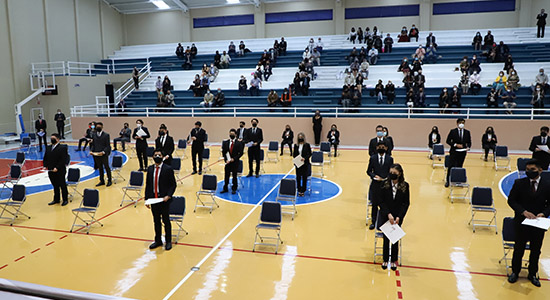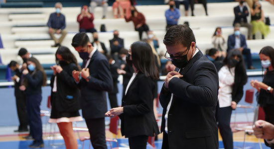 En las 14 ceremonias académicas que se vivieron de manera presencial durante 7 días consecutivos, se cuidaron los protocolos de sanidad propuestos por las autoridades de salud, como, por ejemplo, uso estricto de cubrebocas y gel antibacterial, toma de temperatura al ingresar al lugar, sana distancia y espacios ventilados, a fin de prevenir los posibles contagios de COVID- 19.