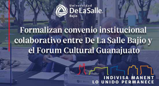 Por su parte, el Ingeniero Ramón Ignacio Lemus Muñoz Ledo, Director General del Forum Cultural Guanajuato, expresó que, la Universidad De La Salle Bajío ha sido un espacio de formación de miles de jóvenes y especialmente han estado presentes desde el génesis del Forum Cultural, quien en ese momento era Rector de esta Casa de Estudios, el Hermano Roberto López, mismo que en conjunto con el comité del Forum comenzaron a impulsar el arte, por lo que ahora, se formaliza la alianza que se ha ido trabajando tiempo a tras a fin de contribuir con la educación de los jóvenes.