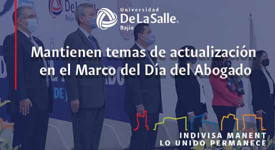 En el marco de la celebración del Día del Abogado, la Universidad De La Salle Bajío a través de la Facultad de Derecho en vinculación con el Colegio de Abogados A.C., realizaron, de manera híbrida, una serie de charlas y mesas de análisis en las instalaciones del Parque de Innovación, cuidando de manera estricta los lineamientos de sanidad, para conmemorar y actualizar información de esta noble profesión de quienes la ejercen.