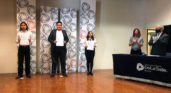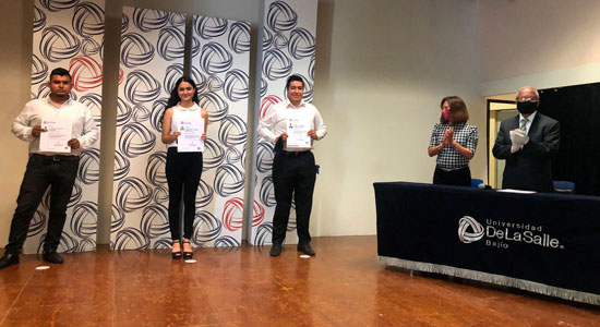 Esta ceremonia de entrega de certificados que se vivió de manera presencial cuidando los protocolos de sanidad, en el Auditorio Antonio María Lozano, ubicado dentro del Campus Campestre, fue presidida por el Hermano Julián Espejel Rentería, Vicerrector de Formación Integral y Bienestar Universitario; la Maestra Bibiana del Carmen Muñoz López, Director del SABES Juan Alonso de Torres.