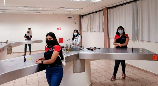 En esta prueba que duró cerca de 3 horas, se implementaron los siguientes protocolos sanitarios para prevenir el contagio de la COVID- 19. Al ingresar, los estudiantes pasaron por filtro de temperatura y gel antibacterial; el auditorio y demás áreas comunes estuvieron señaladas para que ellos tuvieran el cuidado de ocupar los espacios que están permitidos asegurando la sana distancia; las actividades que vivieron no generaban el contacto físico entre ellos.