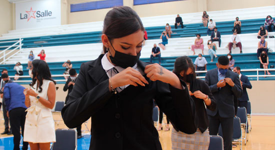 Durante la ceremonia, se les entregó su constancia y la Insignia Institucional; la Directora del Campus Salamanca, la Mtra. Edel Espino Ledezma dirigió unas palabras, pues esta insignia es el símbolo que los identifica como estudiantes lasallistas. Les pidió además que la colocaran en su pecho, cerca del corazón como un recordatorio de lo que realicen sea para la construcción de un mundo mejor.