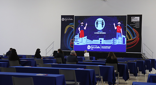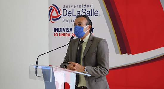 Posteriormente, el Mtro. Jesús Eduardo Trujillo, Jefe del Departamento de Promoción y Publicidad, compartió algunos de los logros que la Universidad ha obtenido a lo largo del periodo 2020-2021, entre los que destacan: Capacitaciones y acompañamiento a docentes para la modalidad no presencial; Inauguración del Centro de Simulación para la Salud; Inauguración de la Extensión Universitaria De La Salle Puerto Interior; Apertura del LAB E3; acreditación de diferentes Programas de Licenciatura; Escalamos 12 puestos en el Scimago Institutions Ranking; Se firmaron 88 nuevos convenios con instituciones del sector público y privado, tanto a nivel nacional como internacional; Incrementamos el número de becas durante el periodo de contingencia, entre otros.
