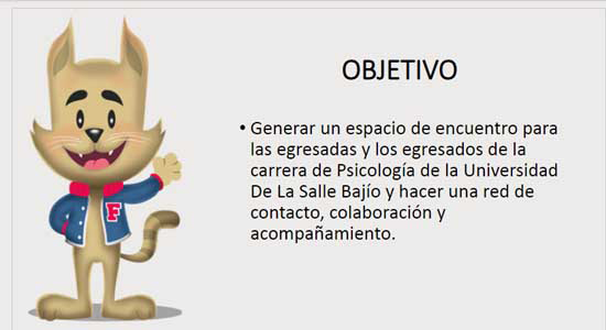 Con el propósito de generar un espacio de encuentro para las y los egresados de la licenciatura en Psicología de la Universidad De La Salle Bajío, así como, hacer una red de contacto, colaboración y acompañamiento se realizó una sesión virtual a través de la plataforma de Microsoft Teams.