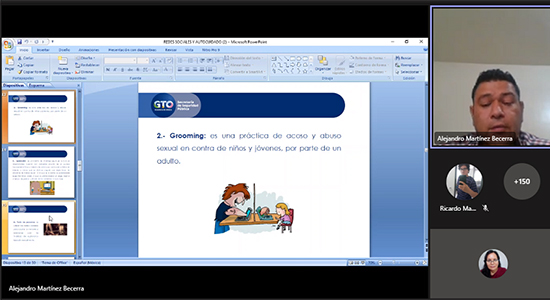 Durante la ponencia, organizada por la Dirección de Orientación y Desarrollo Educativo (DODE), se enfatizó la necesidad de estar informados para no sufrir riesgos como los son: sexting, grooming, extorsión, ciberbullying, entre otros; se mencionó el rango de edad considerado por la Ley de Justicia para adolescentes del Estado aplicable entre los 12 y menos de los 18 años de edad.