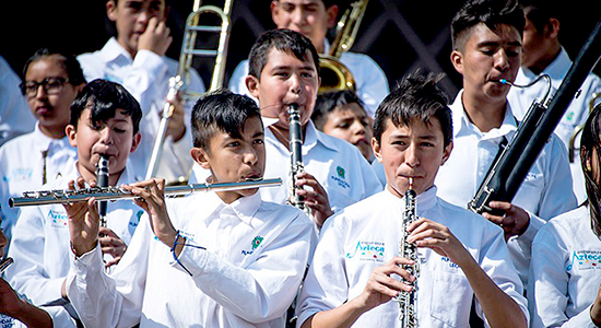La explanada del Templo Expiatorio, fue el escenario en el que niños y niñas pertenecientes a la Orquesta Sinfónica de Fundación León brindaron un concierto para la Comunidad Lasallista y público en general, a fin de mostrar el trabajo realizado durante un mes, como parte de la cartelera ¿Qué hacer?, del departamento de Desarrollo y Gestión Cultural De La Salle Bajío.