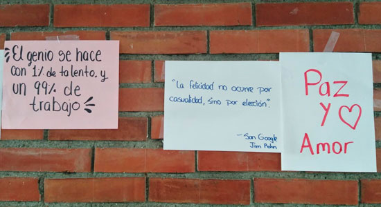 Durante esta semana, los estudiantes vivieron el taller de reflexión por la Paz, en el que, se preparó un espacio de reflexión y dinámicas de colaboración para grupos académicos, cerrando la actividad con una frase que identificara al grupo como un promotor del cuidado del otro.