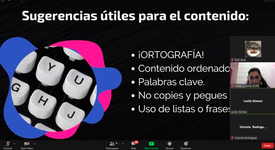 La ponente encargada del taller fue Lesly Daphne Gómez Cornejo por parte del Instituto Municipal de la Juventud, quien abordó los temas: Diseño de diapositivas; Sugerencias para el contenido; Paletas de colores; Uso de imágenes, entre otros.