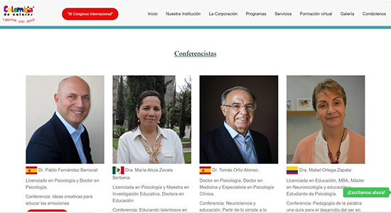 En él, participaron más de veinte expertos y expertas de diferentes países, entre ellos, Colombia, Brasil, Uruguay, Argentina, México y España. De estos especialistas destacó la presencia de Pablo Fernández Berrocal, doctor en psicología y académico de la Universidad de Málaga; la Dra. Mabel Ortega Zapata, de Colombia, y el Dr. Tomás Ortiz Alonso, de España.