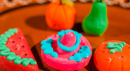 Ahora, separa en bolitas e incorporar el colorante vegetal. Posteriormente, da paso a la creatividad para hacer alfeñiques de colores y diferentes formas. Para la creación de frutas puedes a utilizar los clavos de olor, para que simulen el tallo.