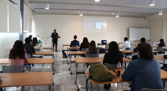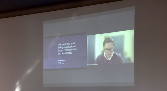 La conferencia de arranque se tituló: “Mi experiencia en el ámbito internacional: Retos y Oportunidades para estudiantes”, impartida por el Mtro. Alejandro González Ruiz, funcionario internacional, en donde compartió con los estudiantes una serie de perspectivas profesionales que pueden ejercer en el extranjero.