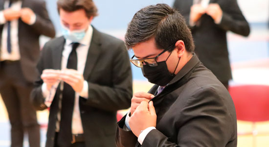 Adicionalmente, la Vicerrectora Académica dirigió la Imposición de la Insignia Institucional, les pidió que la colocaran cerca del corazón, pues es una manera de llevar las cualidades y virtudes del Lasallismo consigo; les explicó el significado de la misma y los exhortó a fomentar los valores que nos caracterizan como Lasallistas de Fe, Fraternidad y Servicio; este es un acto breve pero muy significativo para quienes sienten el orgullo de pertenecer a nuestra Institución. El distintivo en color plata conformado por 3 cheurones entrelazados en forma circular y dotados de movimiento, representan los 3 siglos del Lasallismo y sus valores.